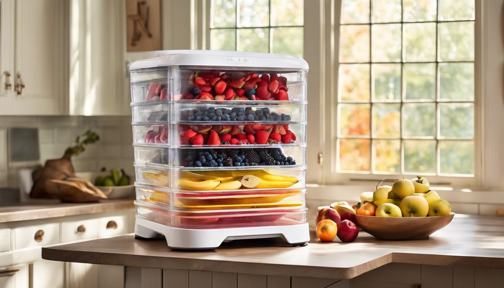 Additionally, check for features like regulowane ustawienia temperatury and timers. These can help you optymalizować zużycie energii based on the type and amount of fruit you're drying.